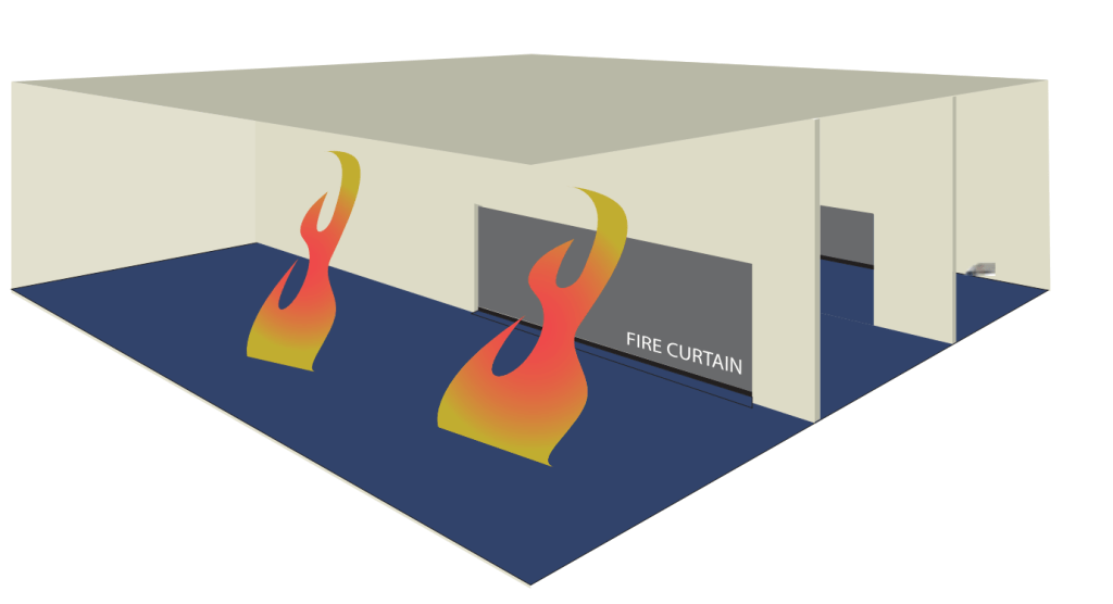 upper level, fire curtains create a physical barrieragainst fire.