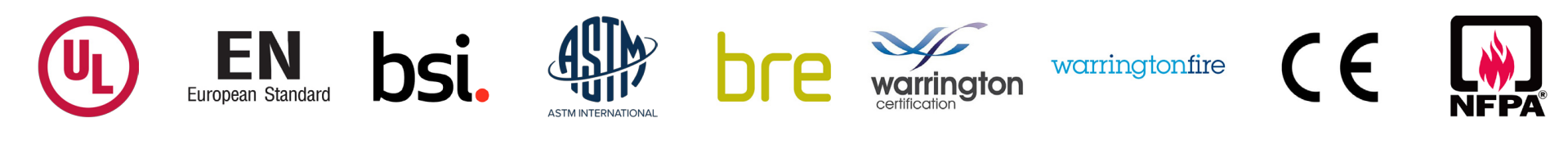 - Fabrics tested to BS 476 Pt 6 and Pt 7, EN 13501-1