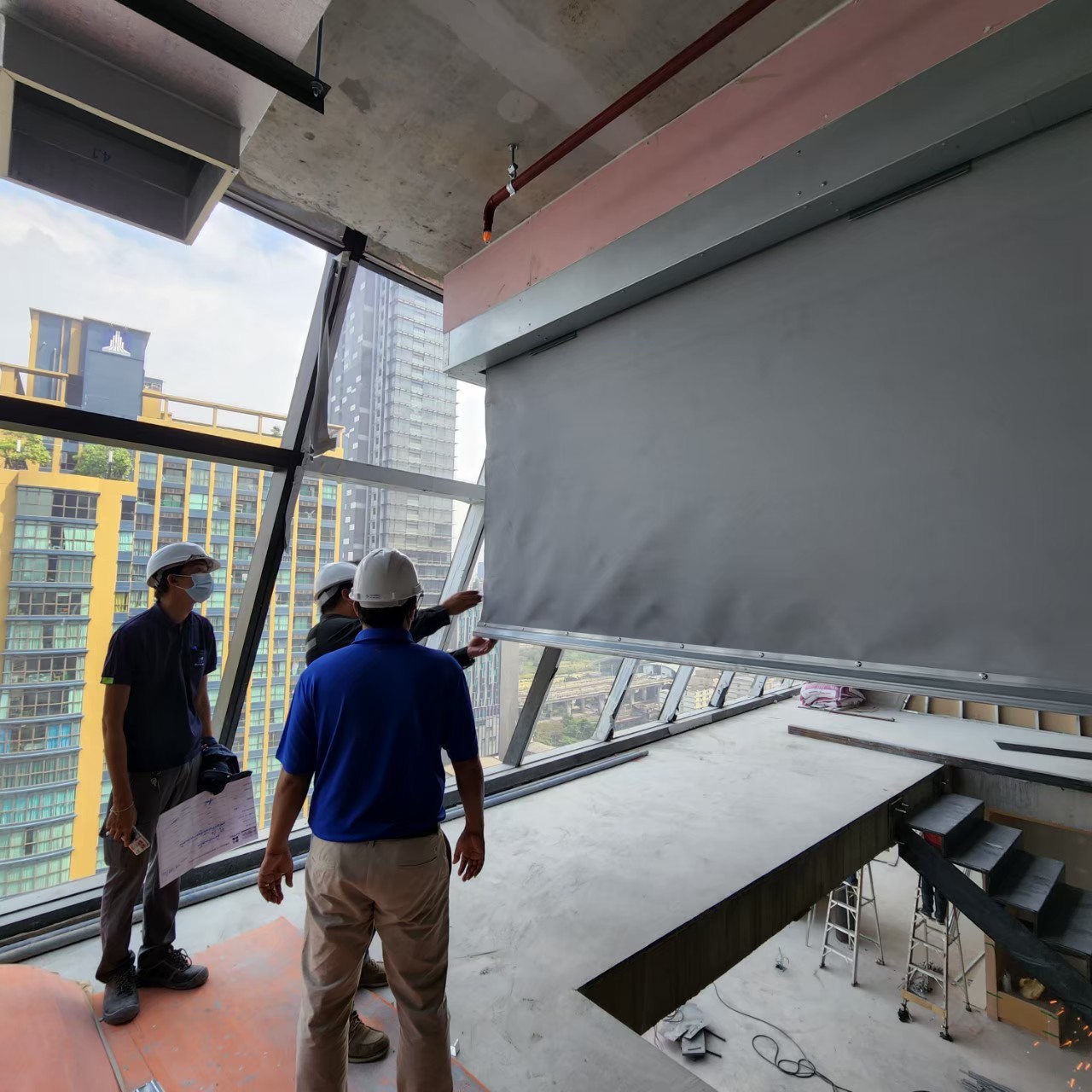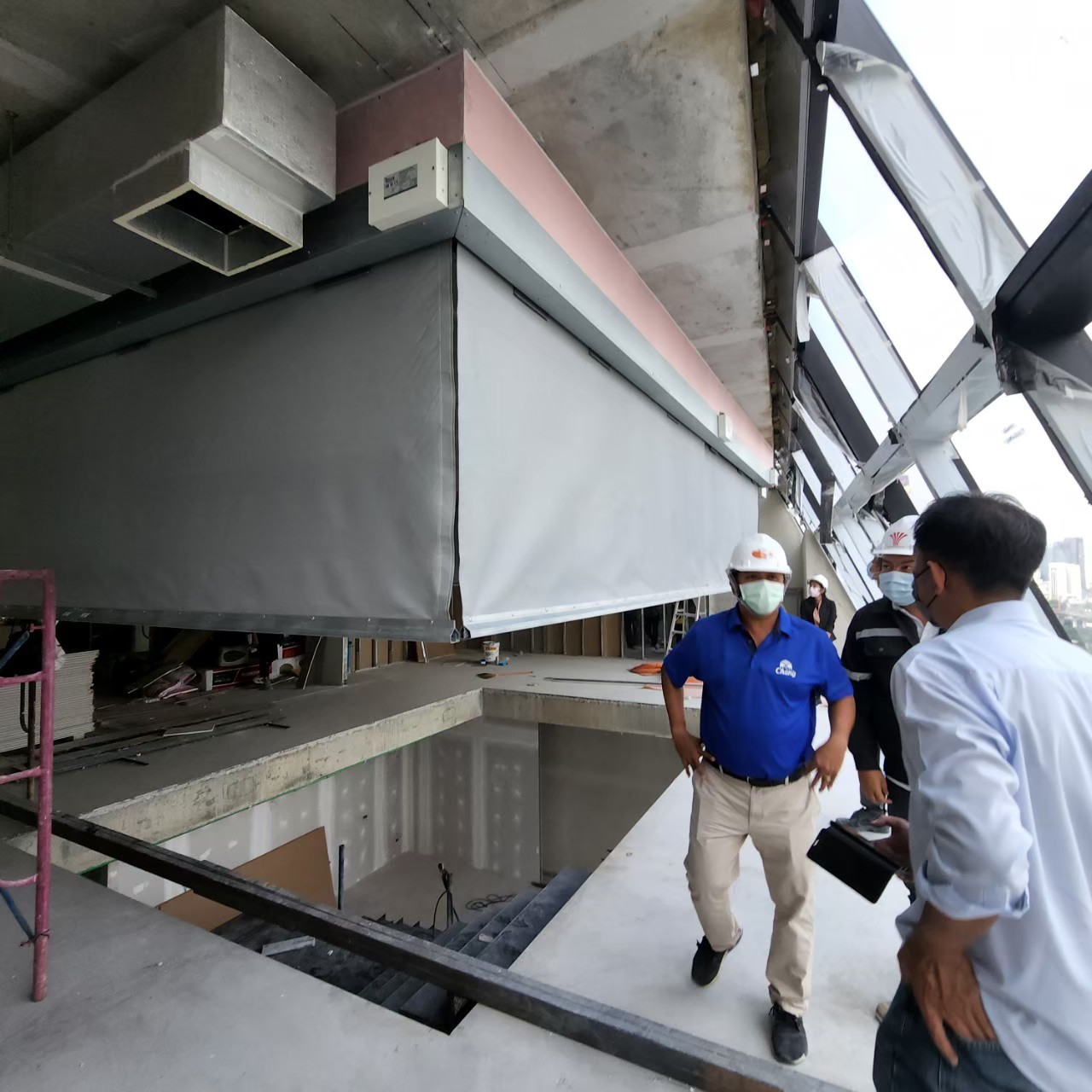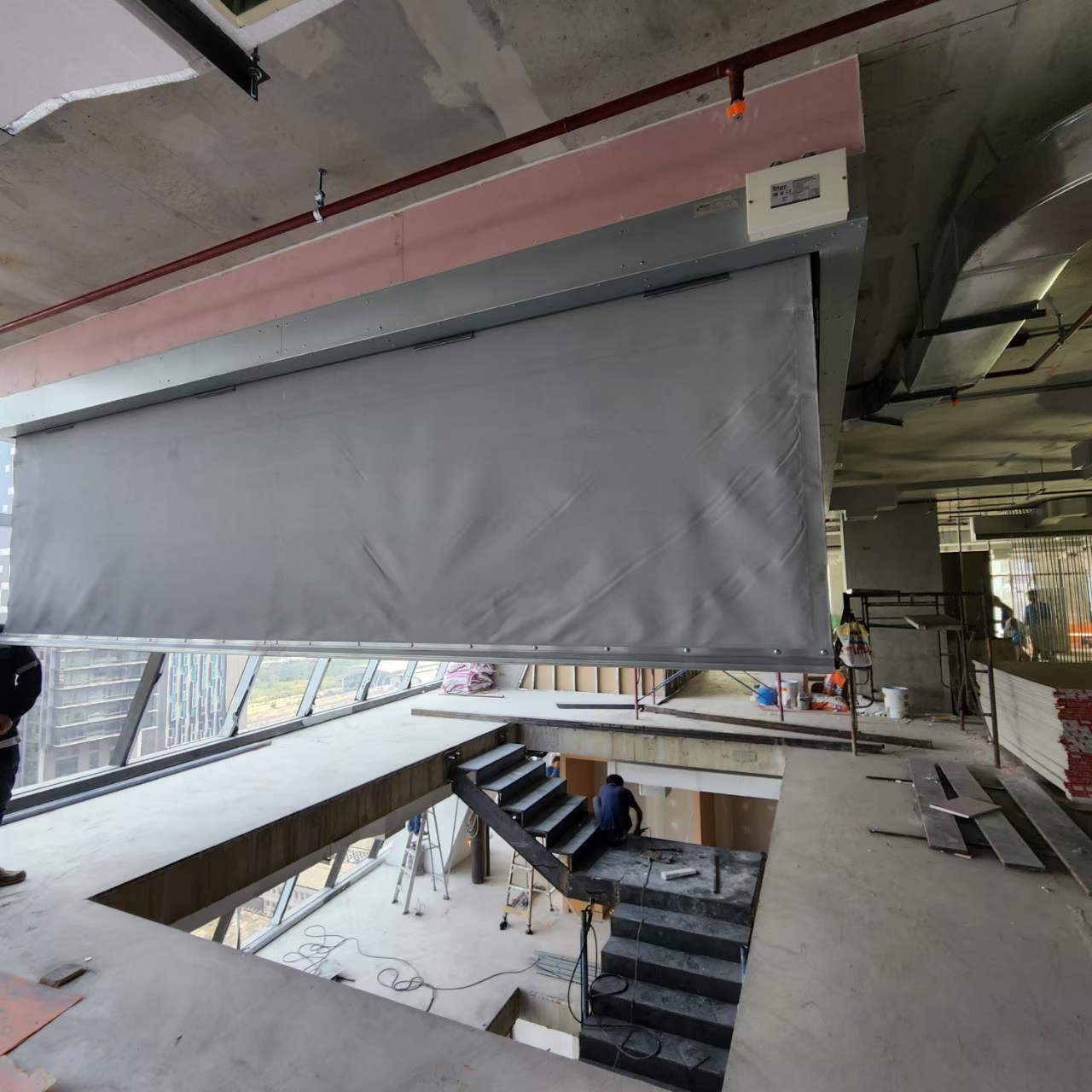 Escalators and stairs create gaps between floors. These gaps are critical points that need to be sealed